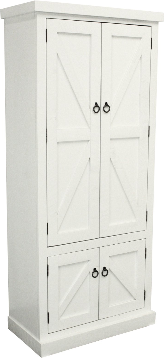 The Rustic Double Door Pantry features 4 doors with hidden storage. Crown molding along top and bottom.Read More