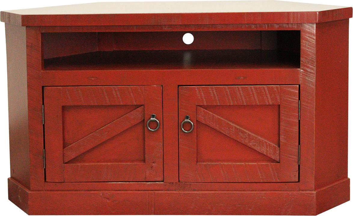 The Rustic Red TV Stand features 2 doors with hidden storage. Fits a 35" soundbar inside.Read More