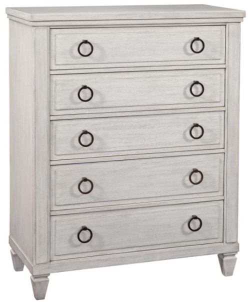 Made from Mahogany solids and veneers, the Salter Path Chest in white finish has five drawers with brushed round knobs and square tapered feet. This chest will definitely add style to your room.Read More