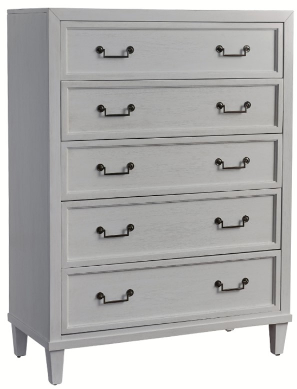 Complete your bedroom design ideas with this drawer chest from 1210 Dunescape collection. Shown in white finish. This drawer chest is made from solid and veneer mahogany and features five drawers. This piece will definitely add style to your room.Read More