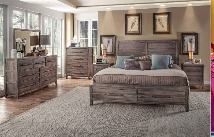 Complete your bedroom design with this King panel bed from 2800 Aurora collection. Shown in Weathered Grey finish. This bed is crafted from Rubberwood and Sengon Tekik Veneers. This piece will definitely add style to your room.Read More