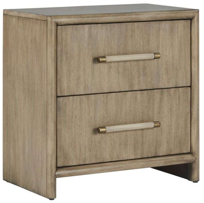 In an inviting tone-on-tone light brown finish over Hardwood Solids and Mahogany straight grain veneers, Arlington is sleek transitional design with softened contours and refined trim. The Bedroom group features two statement beds. One is a wood-framed bed with a wrapped upholstered headboard and footboard for, with a stylish open bracket design on the sides of both the head and footboard. The other wood panel bed has cap molding across the top and softened edges like the case pieces. Influenced by mid-century modern style with an updated appeal, upscale features include soft-close drawer glides, felt-lined top drawers and USB/USB-C ports in the two-drawer nightstand. For a designer touch, the hardware has a lighter wood tone wood pull with brushed gold accents on the ends. Companion pieces include a dresser, mirror, chest and one and two-drawer nightstands.