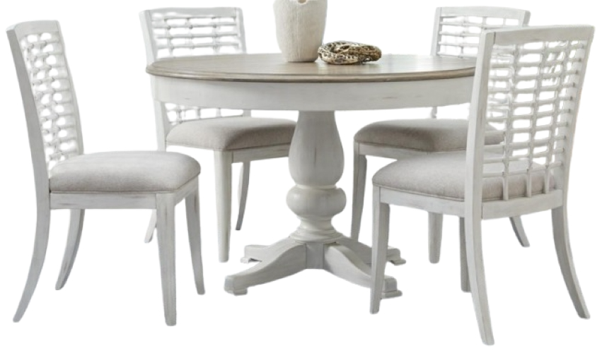 Gather in style with this elegant American WoodCrafters Beach Comber 5-Piece Brown/Weathered White Dining Set. Featuring a sturdy table and four comfortable chairs, it’s ideal for family meals or entertaining guests. A timeless design that brings warmth and charm to any dining space.Read More