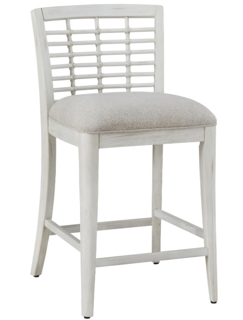 The two-tone Beach Comber Bedroom and Dining Collection from American-Woodcrafters combines a relaxed resort vibe with fresh designer details, including a nautical tied-rope motif fretwork on the dining chairs and textured wood hardware accented with white hang-up.Read More