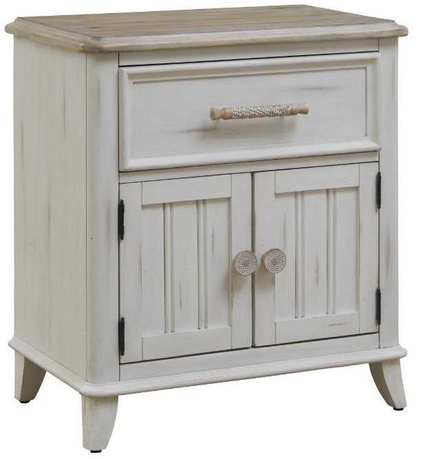 The two-tone Beach Comber Bedroom and Dining Collection from American-Woodcrafters combines a relaxed resort vibe with fresh designer details. The sand-and-soft white colors of the wood hardware mirror the weathered white bases and cases of the collection, contrasting with the driftwood-colored planked tops.Read More