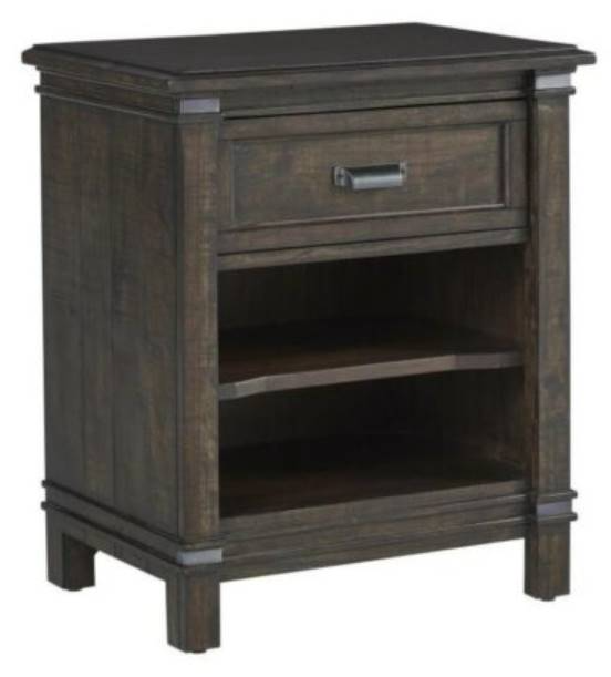 Elevate your room design with this Farmwood nightstand from American Woodcrafters. Shown in whiskey barrell finish. This beautifully crafted nightstand features one storage drawer and will surely make a statement in any room design.Read More