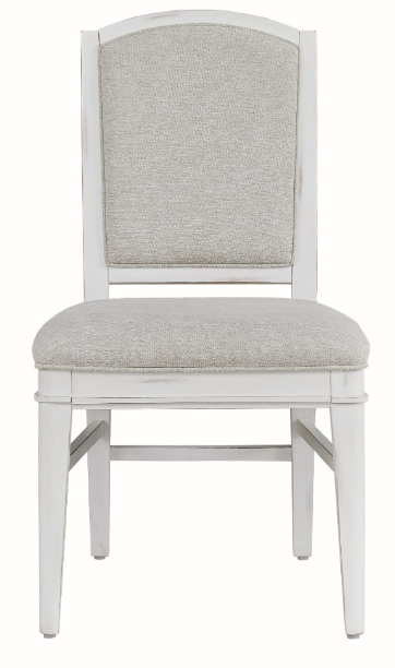 The American WoodCrafters Meadowbrook Side Chair features a stylish blend of whitewashed wood and sand-finished tops. Its upholstered seat adds comfort, while the rustic design brings charm to any dining space, making it a perfect complement to your dining set.Read More