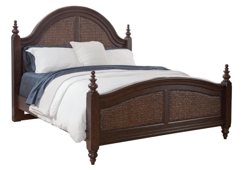 Complete your bedroom design with this Rodanthe king-sized panel bed from American Woodcrafters. Shown in a cherry brunette finish. This bed is crafted from cherry veneers and has woven banana leaf accents. This bed will surely elevate the design of your room.Read More