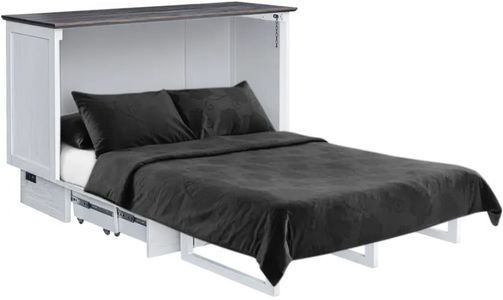 The chest front has hand-placed slats on each of the three front panels and a queen-size bed easily pulls out with a telescoping mechanism and the cut-out handle on its recessed base.