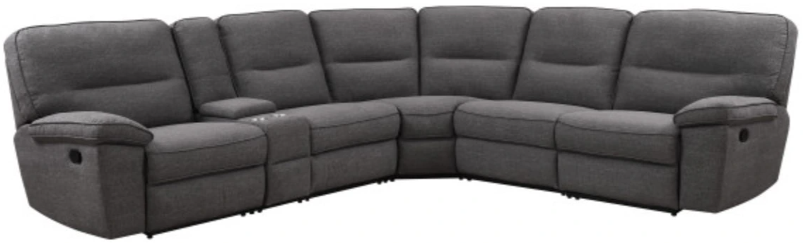 With an updated take on the traditional recliner sectional, the Alberta marries old fashioned comfort with current style. Contemporary charcoal gray, piped edging, and a modern approach to pillow tufting all come together to create this transitional set.Read More