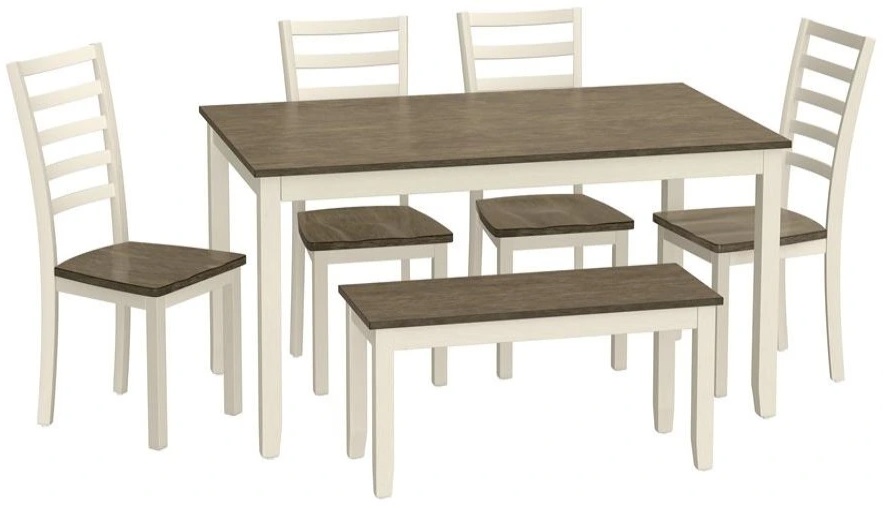 Set Includes: 4 side chairs, 1 dining table, 1 bench