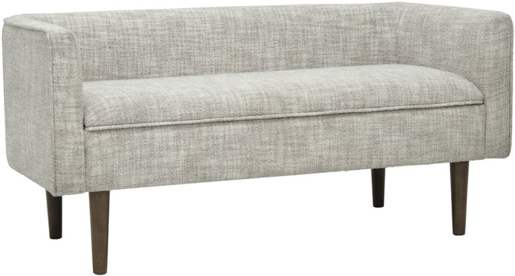 The Isla Storage ottoman blends style with functionality to bring a fresh breeze to your home. With its low back and solid wood legs, this ottoman offers both comfort and durability. The soft chenille fabric, in a light cream color with flecks of gray, creates a serene and inviting look.Read More