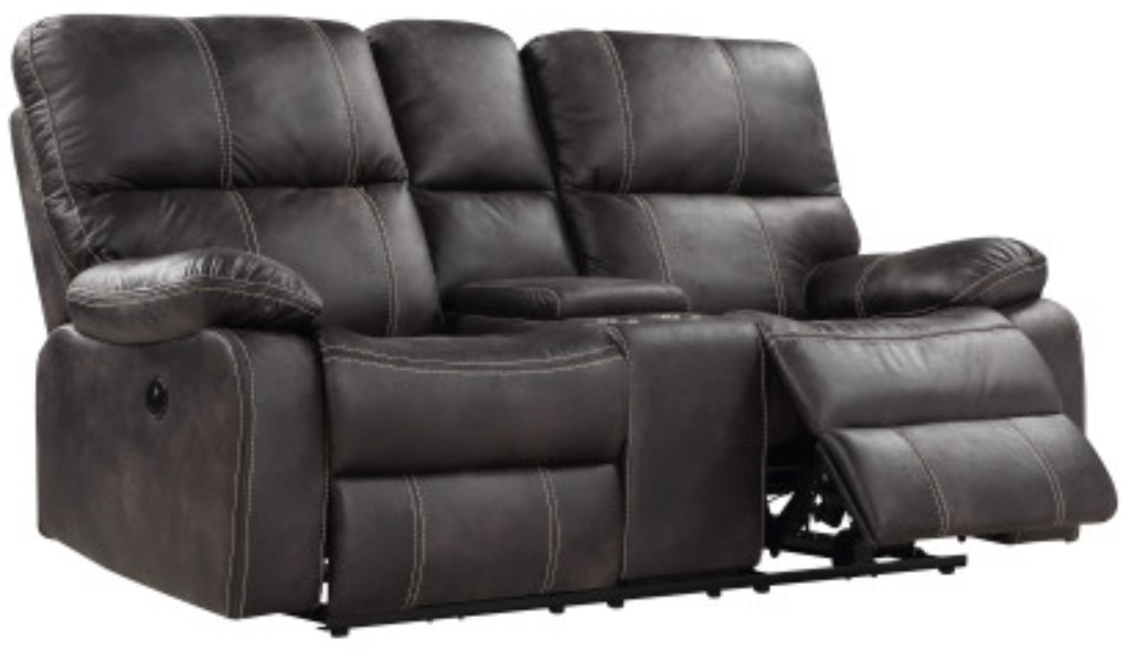 The Jessie James motion collection offers luxury and style with ultimate comfort and convenience. The richly colored faux leather is contrasted by white topstitching creating an eye-catching detail. The well-positioned recline feature handle blends in nicely, offering modern amenities within a traditional design.Read More