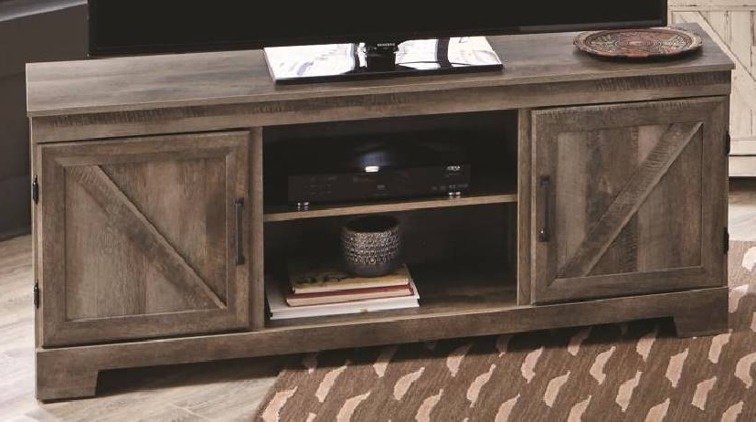This Entertainment from Kith Furniture provides additional storage to your space. Shown in Gambrell finish this console features two doors and one open shelf This piece will definitely add style to your room.Read More