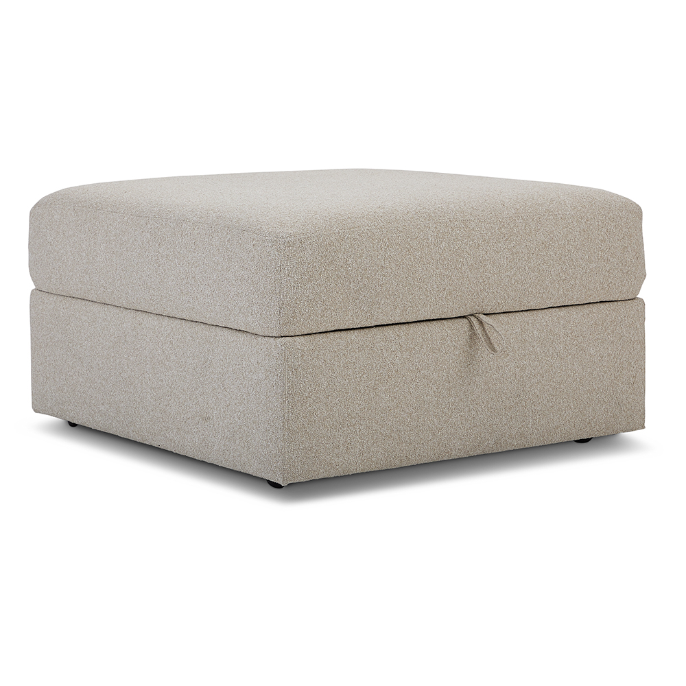Kick your feet up on this lovely upholstered ottoman after a long day. With a large storage compartment, you can also store all your extra blankets to keep your space looking put together. Shown in the color Promise Ecru, this neutral ottoman will fit seamlessly into any home.Read More