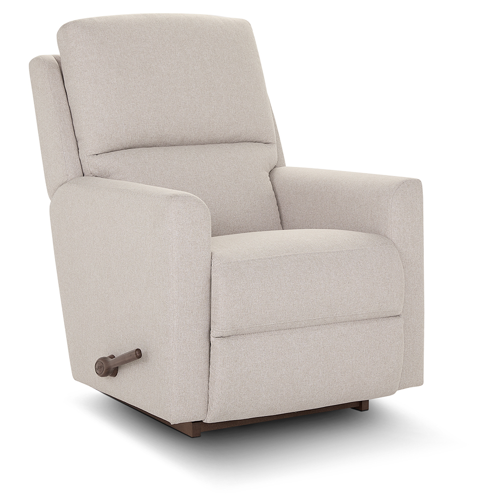 The Wynne Rocking Recliner simply uses the convenient handle on the outside arm to raise the leg rest for reading, relaxing, or watching TV. When you’re not reclining, it’s a relaxing rocker with a smooth, graceful motion. Power versions are available.