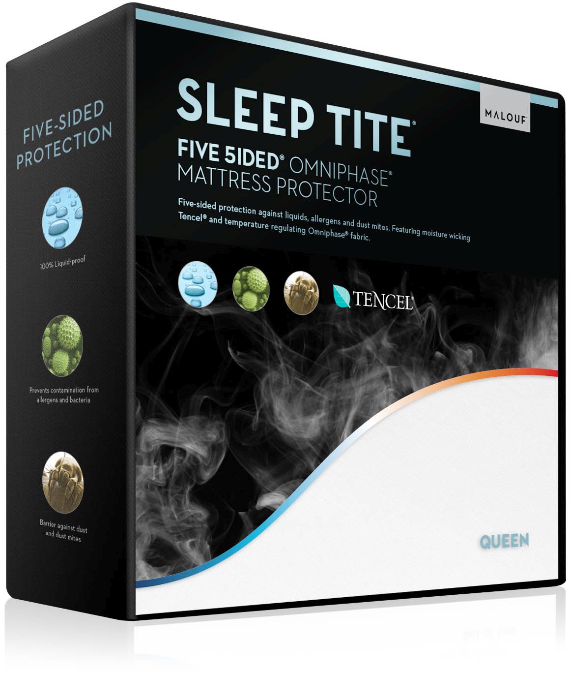 The Five 5ided® Mattress Protector with Tencel™ + Omniphase® is the most advanced mattress protector on the market with three incorporated technologies—Tencel™, Omniphase®, and the H2Pro® membrane. Omniphase® phase change material promotes a comfortable sleeping temperature in any climate; Tencel™ fiber wicks away moisture from the body and the laboratory-certified H2Pro® liquid-proof membrane creates a quiet, and breathable barrier against allergens and dust mites. The combined benefits of these technologies means you will sleep comfortably and dry with five sides of protection for your mattress. Pillow protectors are also available to create a healthy sleeping environment.Read More
