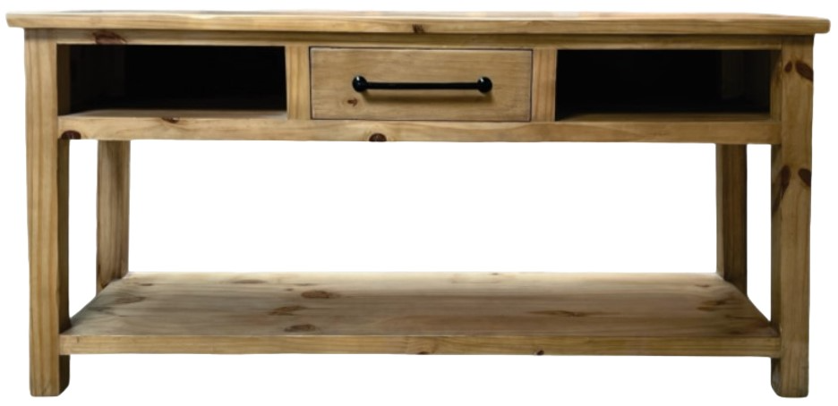 The Million Dollar Rustic Brown Sofa Table features a warm brown finish that accentuates its rustic charm. It includes one drawer for storage, two fixed shelves, and a lower shelf, providing ample space for decor and essentials. This versatile piece enhances any living area with both style and functionality.Read More