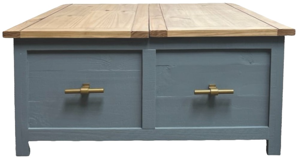 The Million Dollar Rustic Harbor Brown Cocktail Table with Gray Base features a warm brown top paired with a contrasting gray base, creating a rustic yet modern look. Its sturdy design and spacious surface make it ideal for both functional use and decorative purposes, enhancing the charm of any living space.Read More