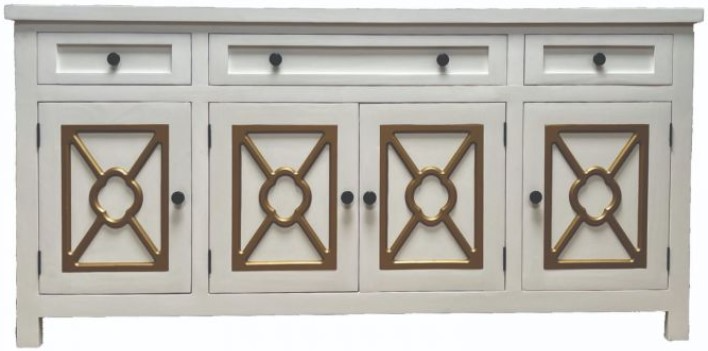 The Million Dollar 4-Door Buffet, measuring 74 inches, features a crisp white finish with elegant gold accents. Its four-door design provides ample storage while adding a touch of sophistication to any dining or living space.Read More