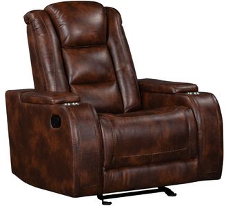 The combination of supportive springs and plush foam ensures optimal comfort and long-lasting durability, maintaining the recliner's shape over time. The soft, supple leather synthetic leather fabric is easy to maintain and resistant to stains and scratches. Enjoy ultimate relaxation with the smooth gliding motion and reclining mechanism. The plush cushioning and ergonomic design make it ideal for living rooms and home theaters. Additional features include storage arms for remotes or books and built-in drink holders for added convenience. The Chester glider recliner offers unparalleled comfort and functionality, making it a perfect addition to your home.