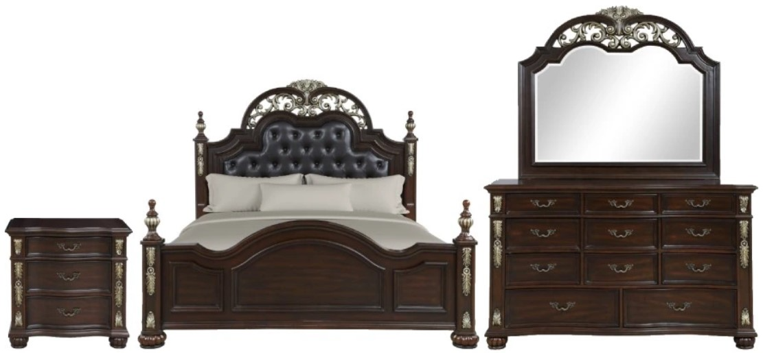 The Maximus bedroom collection is a timeless ode to traditional elegance and masterful craftsmanship. Crafted from poplar solids and birch veneers, each piece boasts a multistep madeira finish adorned with antique gold scrollwork and ornamentation, adding a touch of regal grandeur to your space.Read More