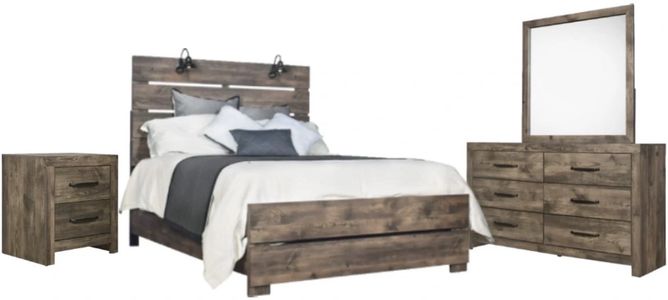 Set includes bed, dresser, mirror, and nightstand