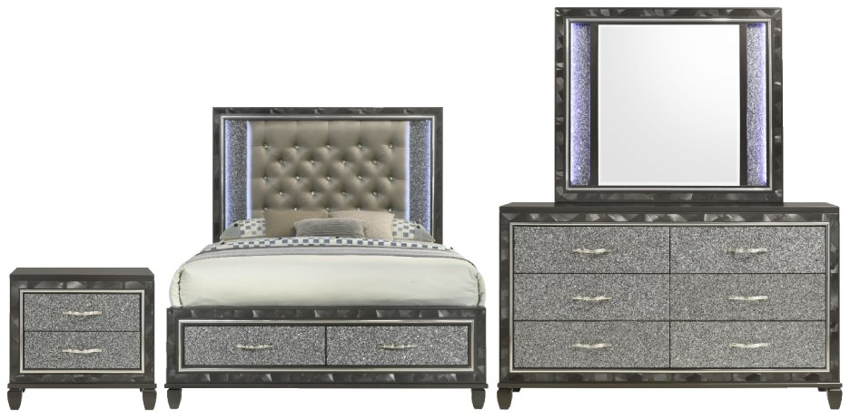 *Bed, nightstand, dresser and mirror set only, any other products that may be displayed are sold separately. Images may not represent the actual size and color in images may differ in person. See the store for the actual color or finish.