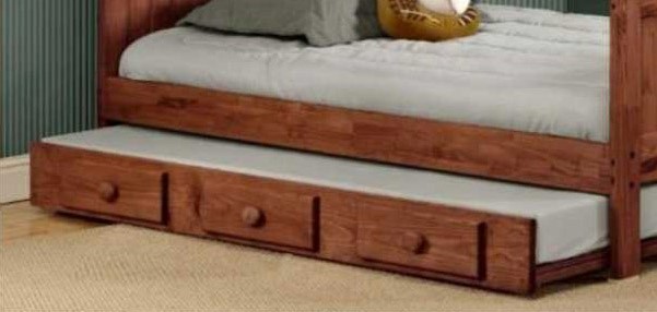 You will love this 4" Underbed Trundle Unit from Pine Crafter Furniture. Shown in a Mahogany finish, this piece is perfect for your mates bed or bunk bed and will definitely add style to your bedroom.Read More