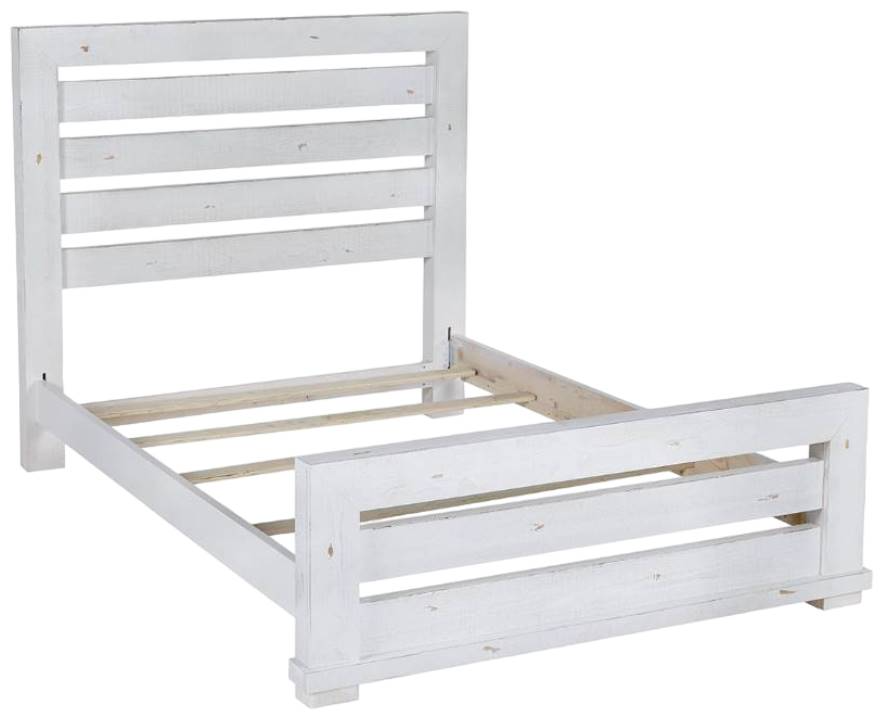 Hand applied distressing on rough hewn and planed pine solids to achieve a natural, vintage look: made to look like paint is chipped and natural pine color shows through. Bed features a wide plank slat headboard.Read More