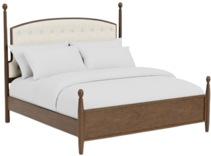 The Riverside Furniture Calhoun whiskey oak king upholstered panel bed is a transitional-style king bed combining warm medium whiskey oak wood with a tufted upholstered headboard, solid hardwood and cracked oak veneer construction, wood support slats, and a panel footboard requiring a box spring for sturdy, elegant bedroom comfort.Read More