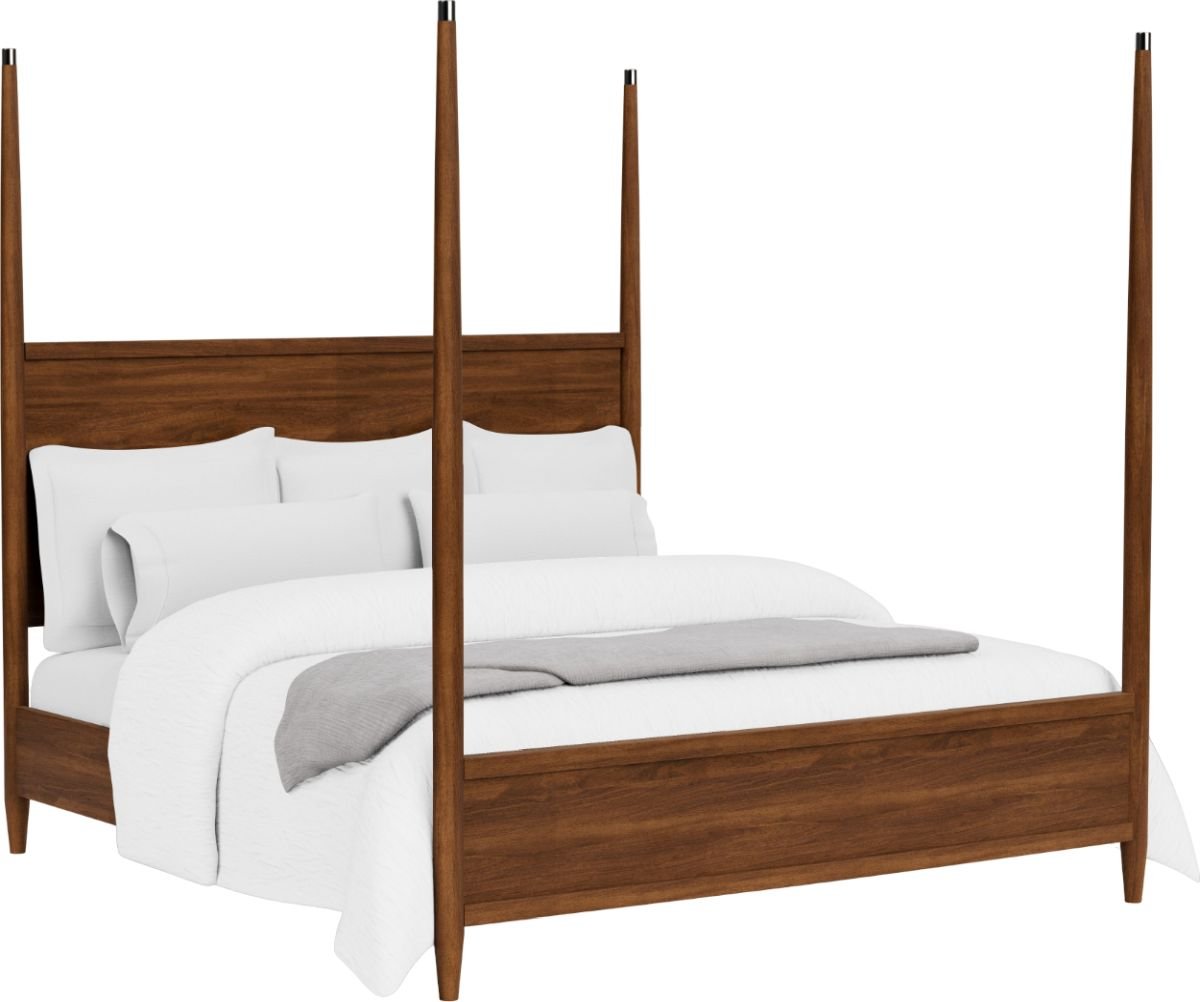 Constructed of select hardwood solids and random matched Walnut veneers with elegant taper posts. Constructed of select hardwood solids and random matched Walnut veneers.Read More
