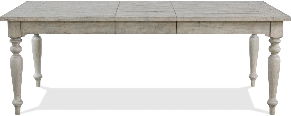 Featuring a cottage-style design and removable 18" leaf, the Riverside Furniture Hailey Rectangular Dining Table is constructed of solid Pine with natural woodgrain and a gray-wash Pebble finish. Matching dining pieces available for the complete Hailey collection.Read More