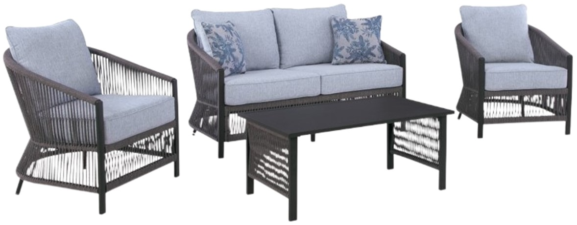 Ready to bring indoor style to your outdoor space? This beautiful 4-piece table and chair set is the perfect choice for creating a cozy patio retreat. A unique rope design lends the loveseat and lounge chairs a light and airy feel, while plush cushions wrapped in cleanable, UV-resistant fabric provide deep-seated comfort.Read More