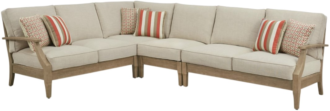 Includes 4 pieces: right-arm/left-arm loveseat, armless chair with cushion and corner with cushion