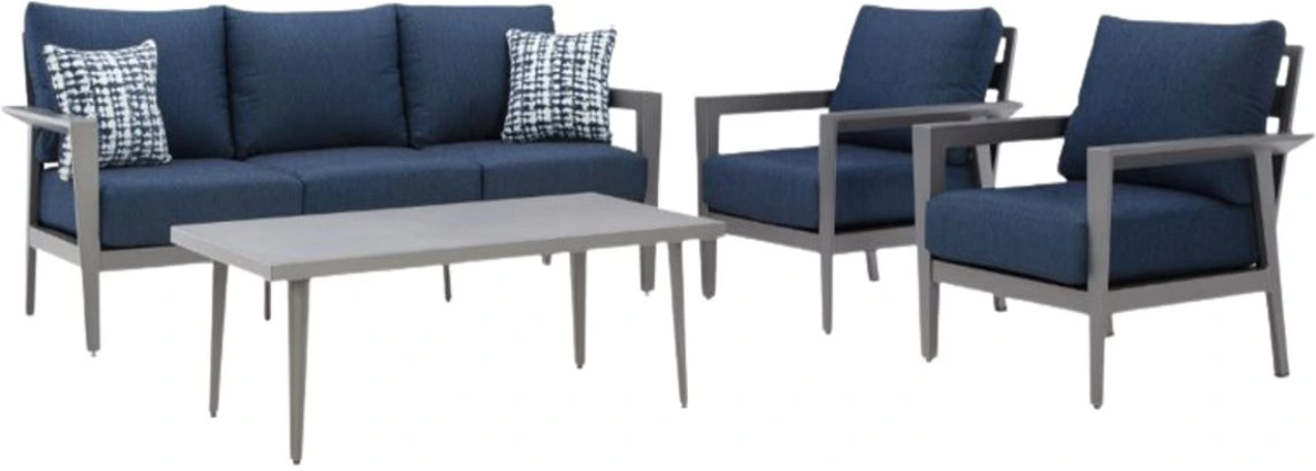 This outdoor collection brings comfort and can’t-miss style to alfresco entertaining. Create a cohesive seating arrangement with the included sofa, chairs and coffee table. The set’s durable aluminum frames in a sleek pewter tone withstand the elements to provide the longevity you need.Read More