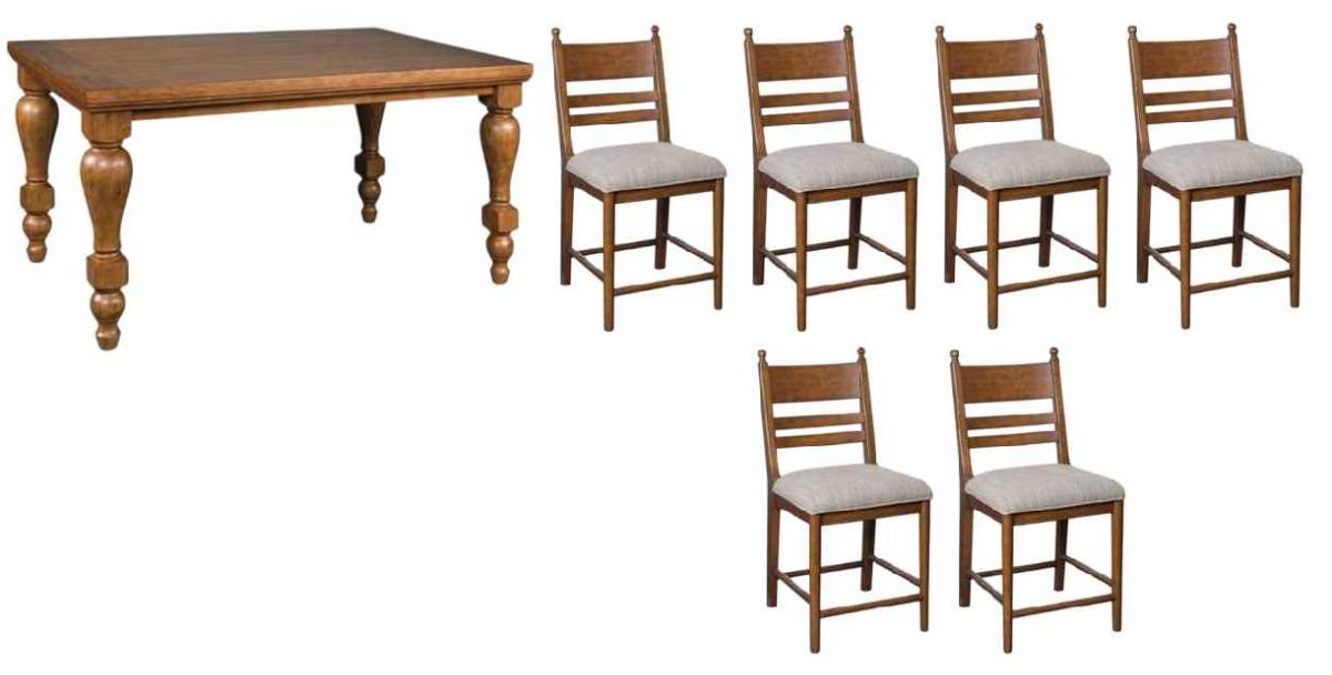 Relaxed living and cozy comfort that’s what traditional farmhouse design is all about. And what better way to embrace your love of rustic country style than with this counter height dining table. Celebrating the beauty of simplicity, its thick wood-tone top and chunky turned legs marry functionality with classic appeal for a fresh feel.