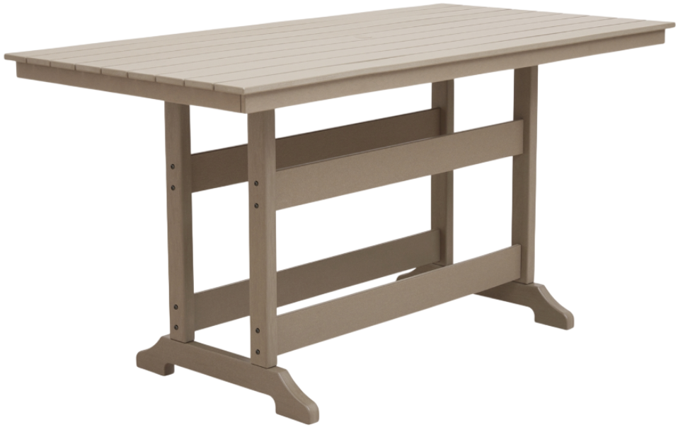 This outdoor counter height dining table is the perfect companion for alfresco living. Its contemporary, neutral design creates an effortlessly chic focal point for any deck or patio. Built with a smart slatted construction, it sheds rainwater while delivering exceptional durability that stands up to the elements year after year.Read More