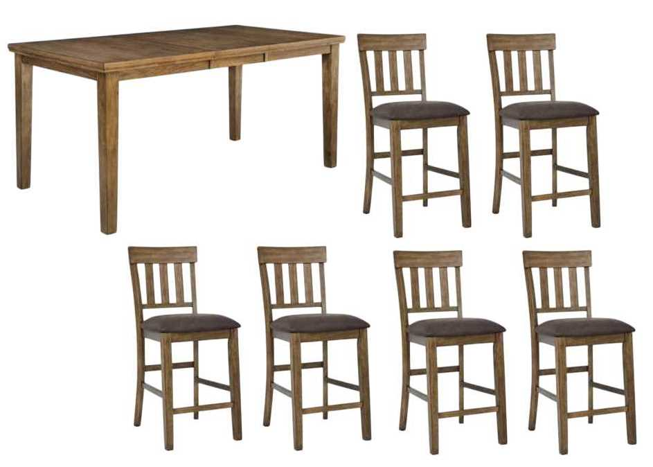 Looking for the ideal table to host everything from casual family meals to larger gatherings? With its timeless design and inviting light brown finish, this handsome counter height dining extension table is the perfect piece for making wonderful memories. A self-storing butterfly leaf makes room for more folks—and more fun.